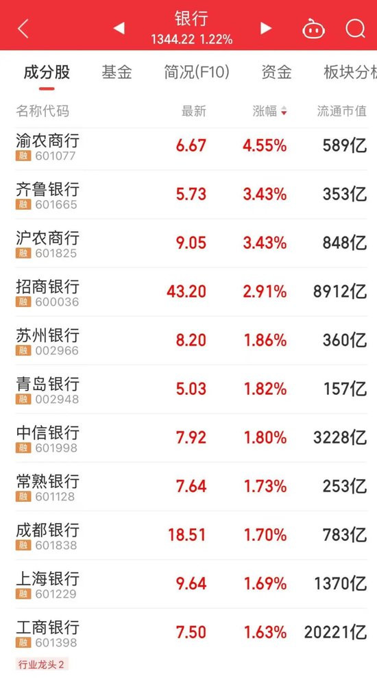 今天上午,银行板块反弹,渝农商行、沪农商行等个股涨幅居前。